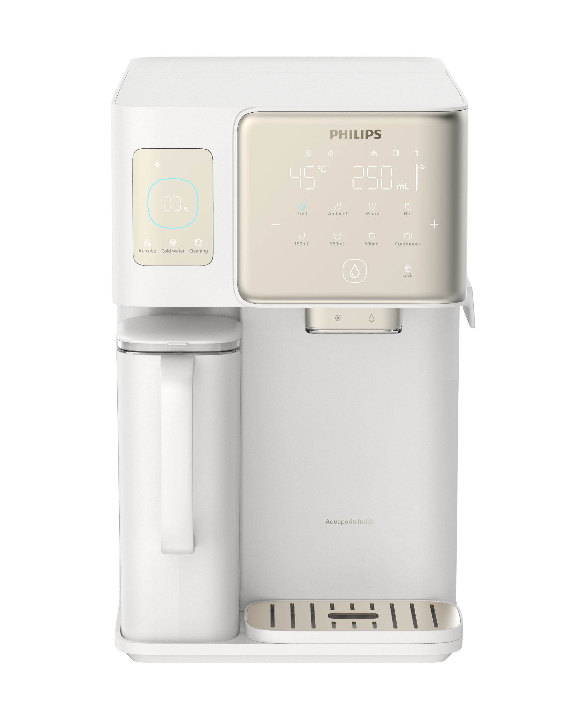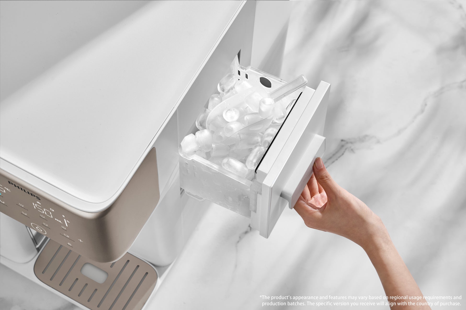 - Purifying excellence: From ice-cubes to boiling hot. Enjoy purified ice cubes, chilled water and boiling hot water from 5°C to 100°C, thanks to integrated reverse osmosis filtration, heating, cooling, and ice-making technology.